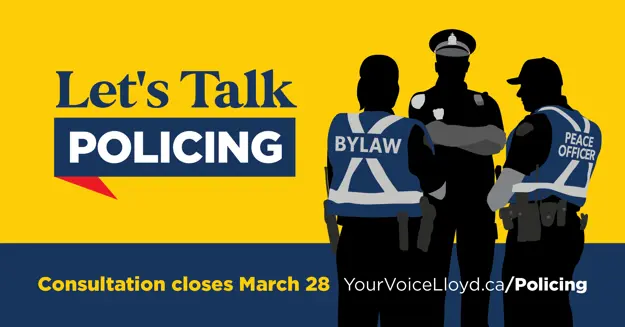 Lloydminster, AB/SK—The City of Lloydminster invites residents to provide feedback on public safety and local policing levels through the Let’s Talk Policing campaign. Running from March 5 to March 28, this engagement initiative aims to gather community feedback on perceptions of public safety, satisfaction with policing services, and desired annual priorities.