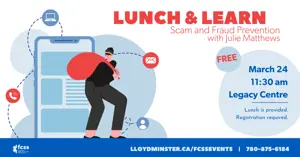 Lloydminster, AB/SK—With fraud on the rise across Canada, residents of Lloydminster and surrounding areas are invited to a free Lunch & Learn event on March 24 at the Legacy Centre (5106 46 St.). Doors open at 11 a.m., with a presentation at 11:30 a.m., which will take place as attendees enjoy a complimentary lunch.