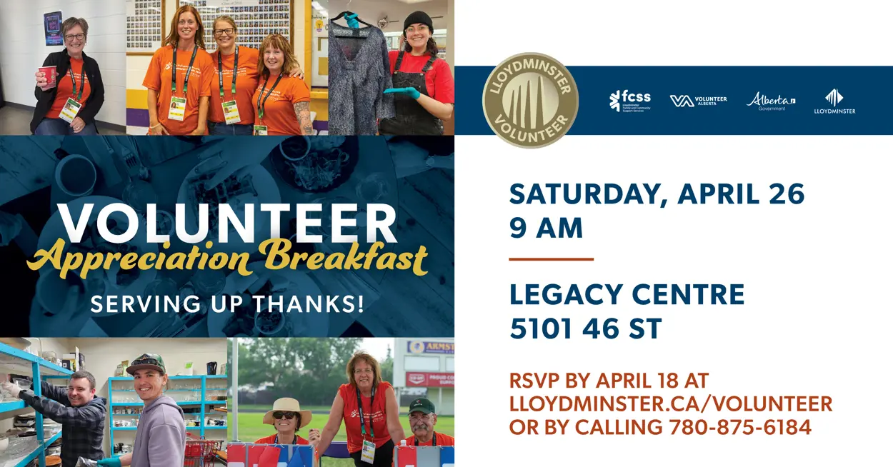 Lloydminster, AB/SK—The City of Lloydminster is hosting its annual Volunteer Appreciation Breakfast on Saturday, April 26, at 9 a.m. at the Legacy Centre (5101 46 St) to recognize the contributions of local volunteers.