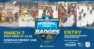 Lloydminster, AB/SK – Skates are being sharpened and bragging rights are once again on the line as the Lloydminster RCMP and Lloydminster Fire Rescue gear up to face off in this year’s Todd Gustavson Memorial Battle of the Badges hockey game on Saturday, March 7. Puck drops at 12:30 p.m. at Cenovus Energy Hub (3905 39 Ave), marking the first time the event will be hosted in the community’s newest venue.