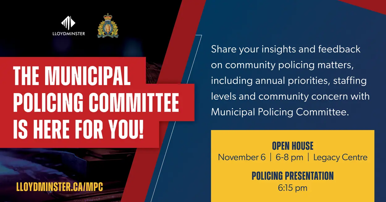Lloydminster, AB/SK – The City of Lloydminster’s newly formed Municipal Police Committee is inviting residents to attend its first public open house on Thursday, November 6, 2025, from 6 to 8 p.m. at the Legacy Centre (5101 46 Street).