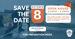 Lloydminster, AB/SK — The Lloydminster Fire Department – now known as Lloydminster Fire Rescue – invites residents to an open house on Wednesday, October 8, from 3:30 to 7:30 p.m. at Fire Station 2 (2706 59 Ave) as part of Fire Prevention Week.